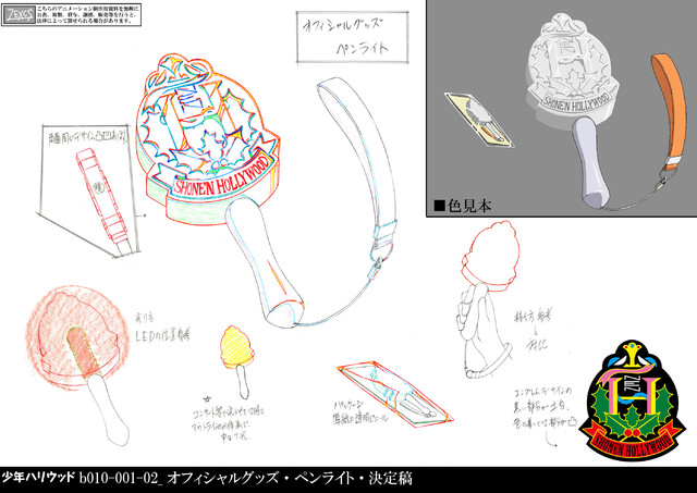 少年ハリウッド エンブレムペンライト完全版は上記設定資料をもとに、3Dデータを作成し、ペンライトの金型を制作、商品化を致します。