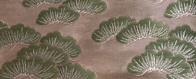 春夏秋冬、1年を通して緑の葉をつけ続け、他の植物が生きていけないような厳しい環境でも育ち、松の中には樹齢千年越すものもあることから『不老不死の象徴、不老長寿』の意味を持つ。お正月には「門松」や「松飾り」として、”歳神(としがみ)様が家を訪ねてくれるように”と大事にされ、日本の風情を色濃く表す植物です。伝統柄の重厚なの中に、モダンな色彩を感じます。