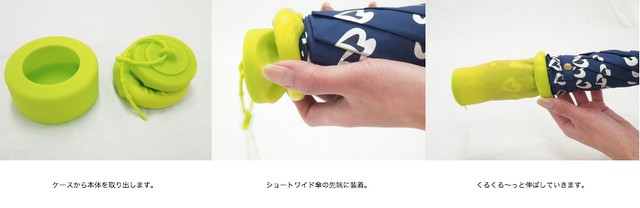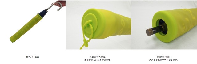 簡単に濡れた傘をシリコンカバーに収納でき、簡単に傘を取り出せる。