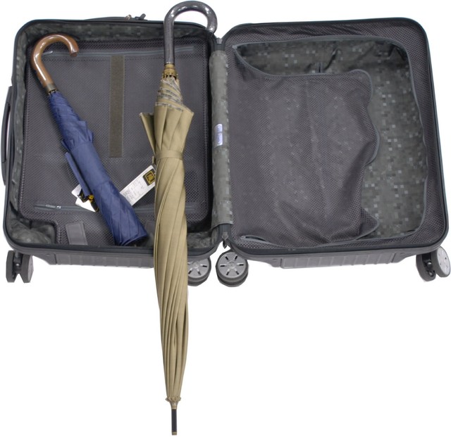 その上、紳士用大判の傘でも、機内持ち込みサイズのキャリーケースにスッポリ。