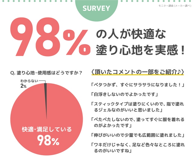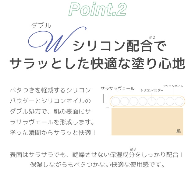 - ベタつかずサラサラで快適な使用感!8つのフリー処方でお肌にも優しい!