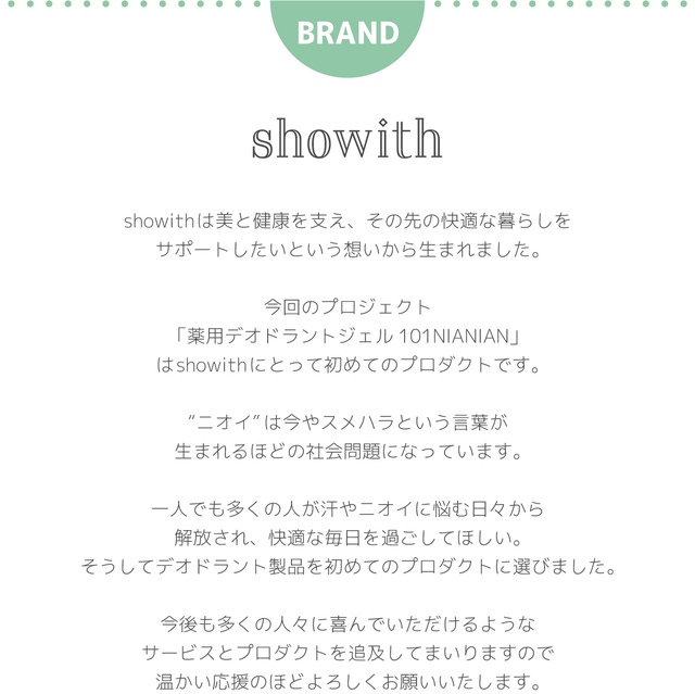 「Makuake(マクアケ)」は、実行者の想いを応援購入によって実現するアタラシイものやサービスのプラットフォームです。このページは、 コスメ・ビューティーカテゴリの 「汗を抑えてニオイの元から徹底ブロック!薬用デオドラントジェル101NIANIAN」プロジェクト詳細ページです。