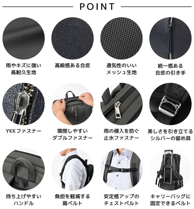 リュックのイメージに多い学生っぽさをなくし、大人のビジネスマンに合う洗練されたデザインです。