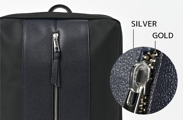 シルバーとゴールドの組み合わせが上品なYKKファスナーを使用しました。