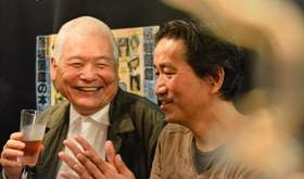坪内祐三さんとは、1993年、講談社からわたしが「ヘボン博士のカクテル・パーティ」という本を出し、彼が文藝春秋刊行の「シブい本」で取り上げてくれたときからの付き合いです。原作の「酒中日記」から好きな人を選び、カメラは『探偵はBARにいる』の田中一成さんにお願いして、3台のカメラで、予算内の5日間をフルに使って撮影。長時間のラッシュを半年間かけて編集し、100分以内にまとめました。