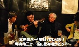 ・映画『酒中日記』登場の文壇場バー「猫目」を貸し切り!坪内祐三さんと一緒に飲み明かしましょう!2015年3月~4月実施予定です。日時はこちらで指定させて頂き、3月中旬(3/13(金)頃)にご案内メールを致します。
