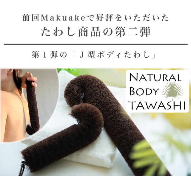 ・第1弾「J型ボディたわし」のプロジェクトページ:https://www.makuake.com/project/bodytawashi/