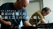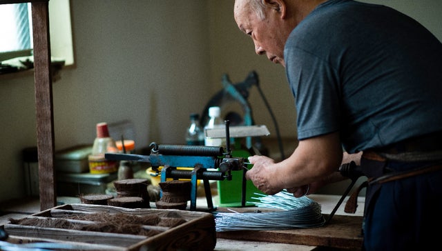 現在、都内にはシュロたわしの手造り工房は一軒のみとなりました。職人の高年齢化と後継者不足は業界が抱える大きな問題です。たわし工房「サガラ」の佐柄真一さんご兄弟も八十歳での引退を考えていらして、あと数年とのことです。