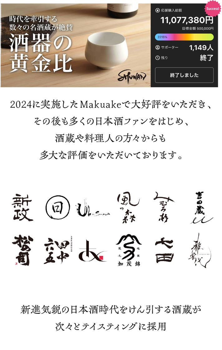 SHUWANは、”進化する日本酒のためのスタンダード酒器”をテーマに開発された日本酒専用グラス・酒碗ブランド。 ミシュラン三つ星店をはじめ、全国の料飲店・酒蔵から確かな評価を受け、 「日本酒の香りがここまで変わるとは思わなかった」との声が多数寄せられています。