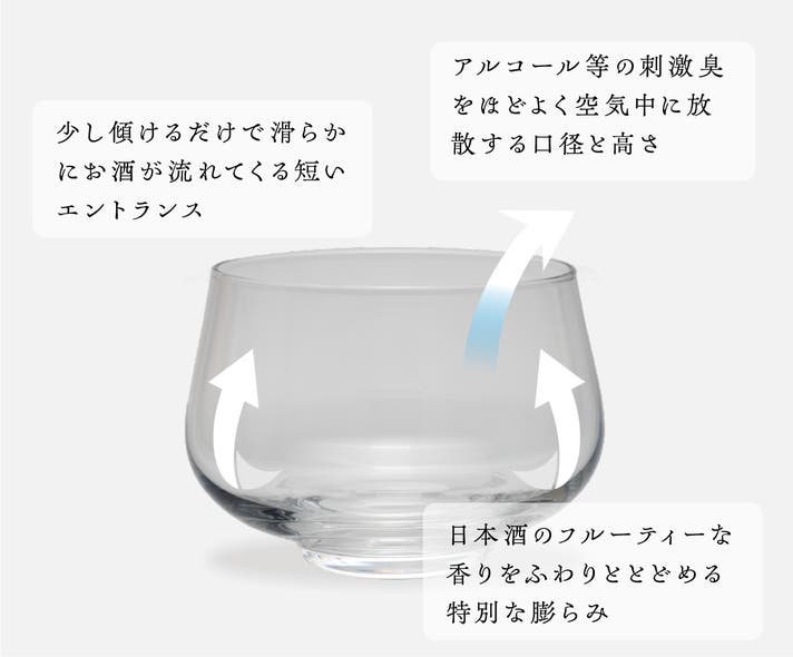 一般的な猪口のように小ぶりで背も高くない酒器の場合、注いだ日本酒の香りがすぐに空気中へと拡散してしまい、本来の繊細な香りをじっくり愉しむことができません。