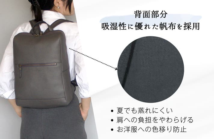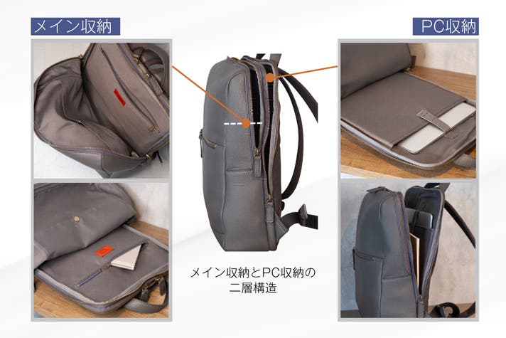 - 上品な本革に撥水加工を施し、シーンを選ばず毎日頼れる万能リュック