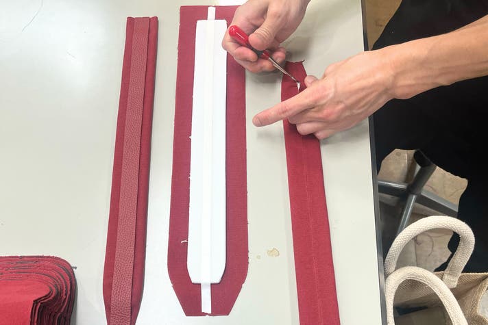 鞄づくりに必要な技術は多岐にわたります。PCリュック「シクレ」も職人の技術を随所に感じていただける鞄に仕上がっています。