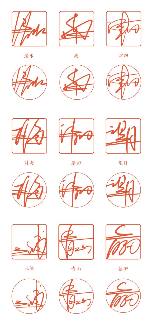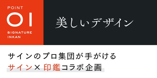 手描き文字を印鑑の枠に単に入れるだけではなく、文字と枠のラインの太さ、文字の大きさ・配置バランスなどを考慮した、サインのプロフェッショナルとデザインの専門家ならではの技術が詰まった逸品です。