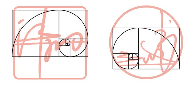 いきいきとした温もりのある手書きサインを印影として美しく見せるために、文字のラインの長さ、縦横の対比、余白のバランスなどを考慮して再デザインする必要があります。そのデザイン手法の代表例として、上記「黄金比率」を使用します。