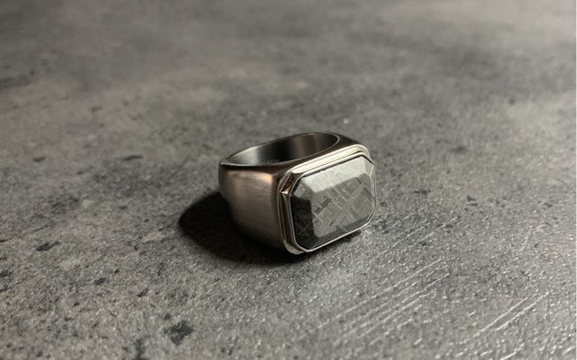 - メテオライトリング第三弾。シグネットリングに、流通量極小の希少な「ムオニナルスタ隕石」を使用。