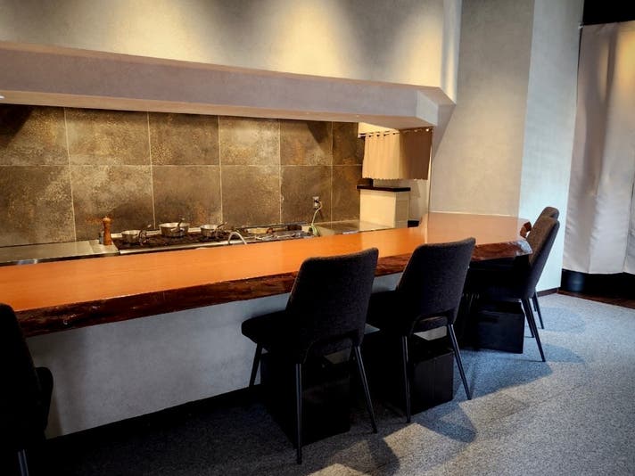 店内は、ビンテージな一枚板カウンター6席をメインに、お一人ずつ余裕のあるお席で、バーのような落ち着いた空間となっています。