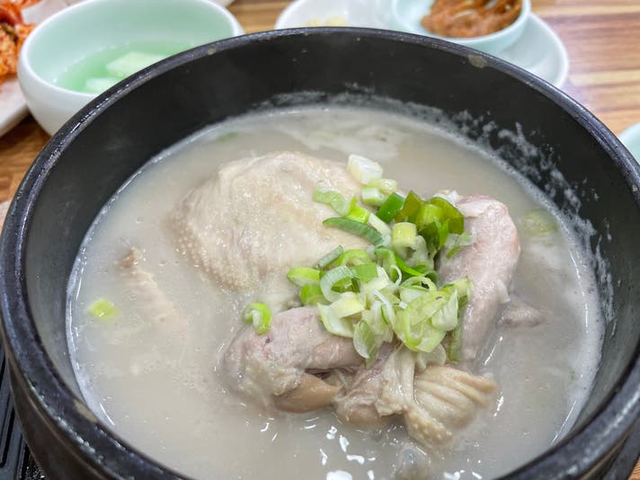 ↑長時間煮込んだ「参鶏湯」は韓国では滋養強壮料理の定番です。