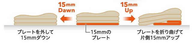 外して低くするだけでなく、プレートを折り畳めばお好みの位置で高さを上げることもできます。