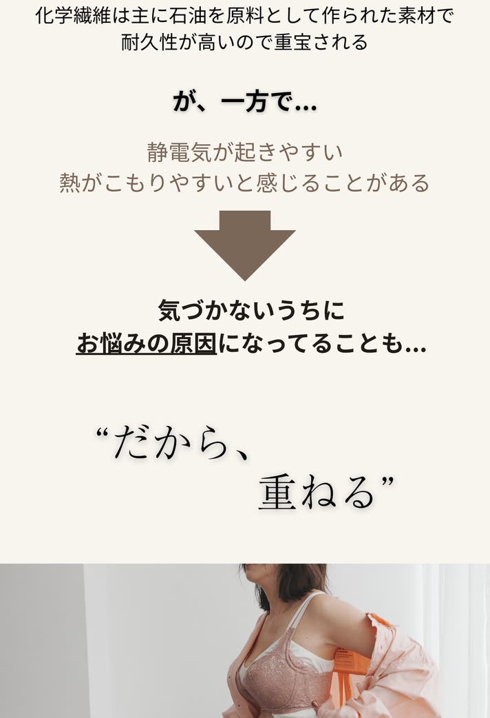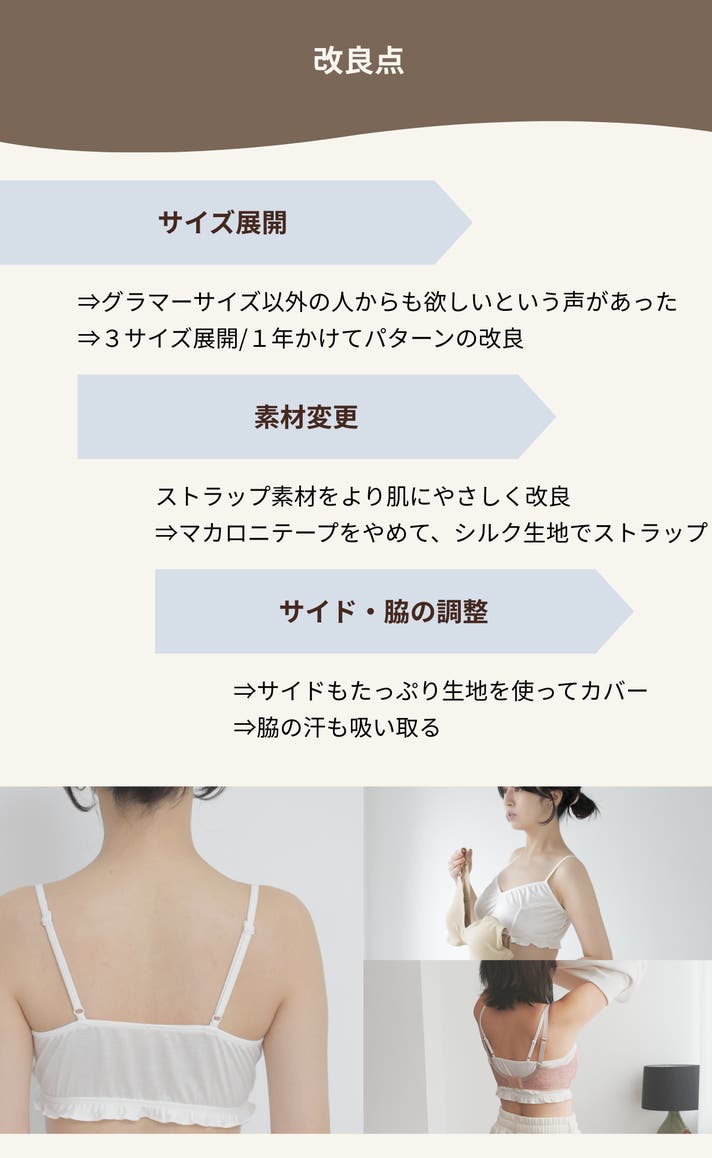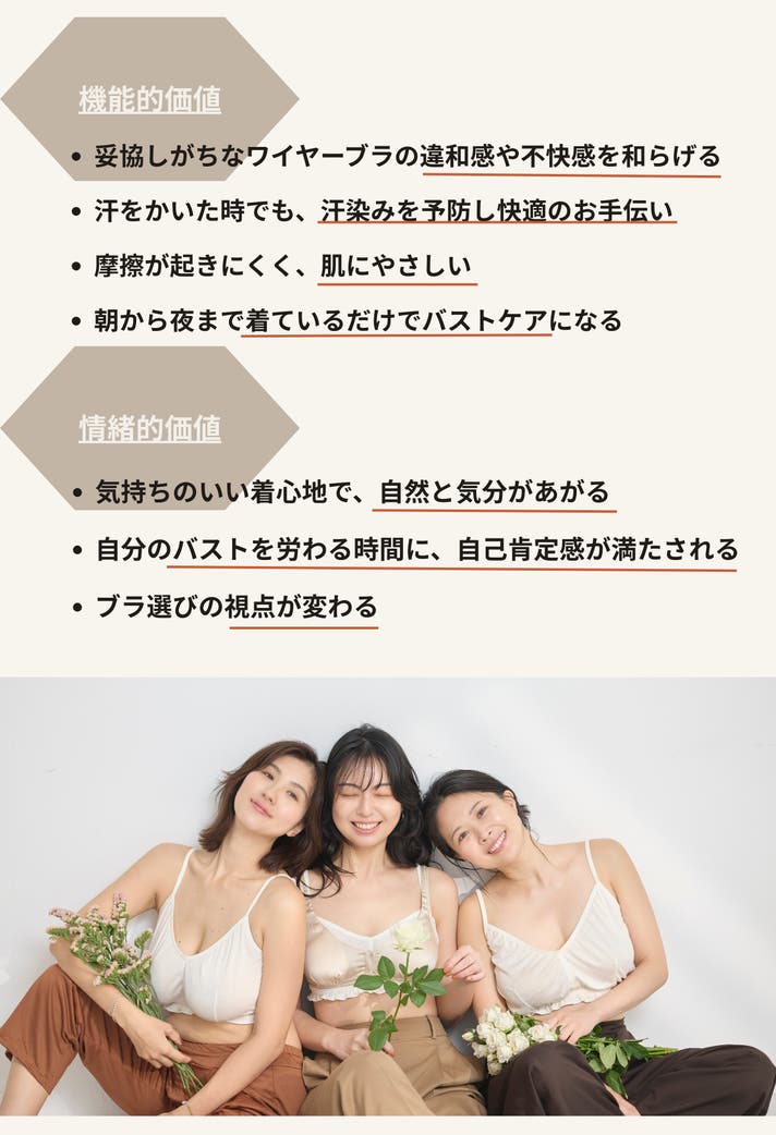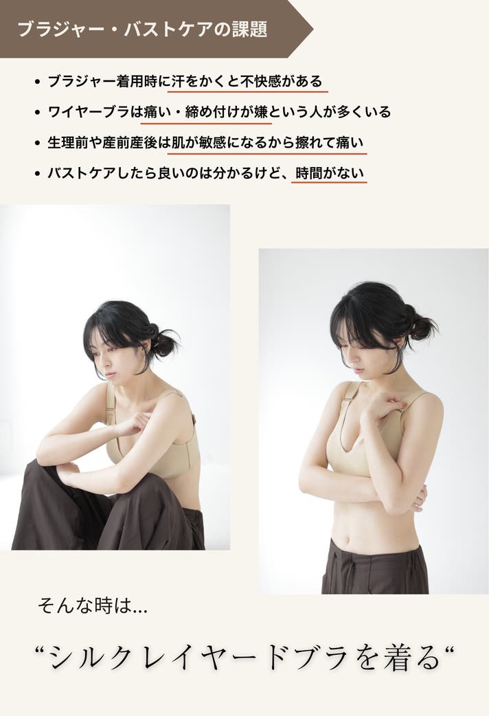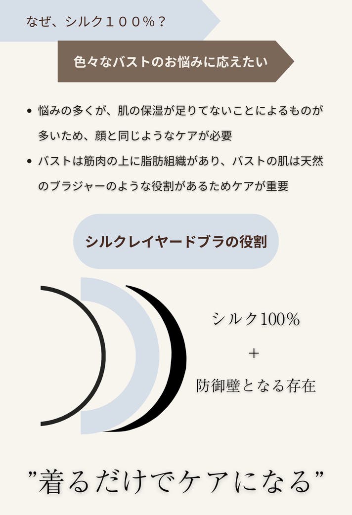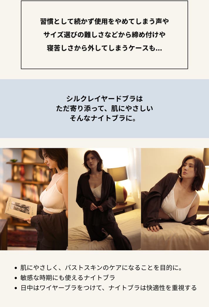 商品に対して“自分の身体をもっと大切にできるものを届けたい。”と思っていたところシルクレイヤードブラがバストケアにもなっているという気づきでした。