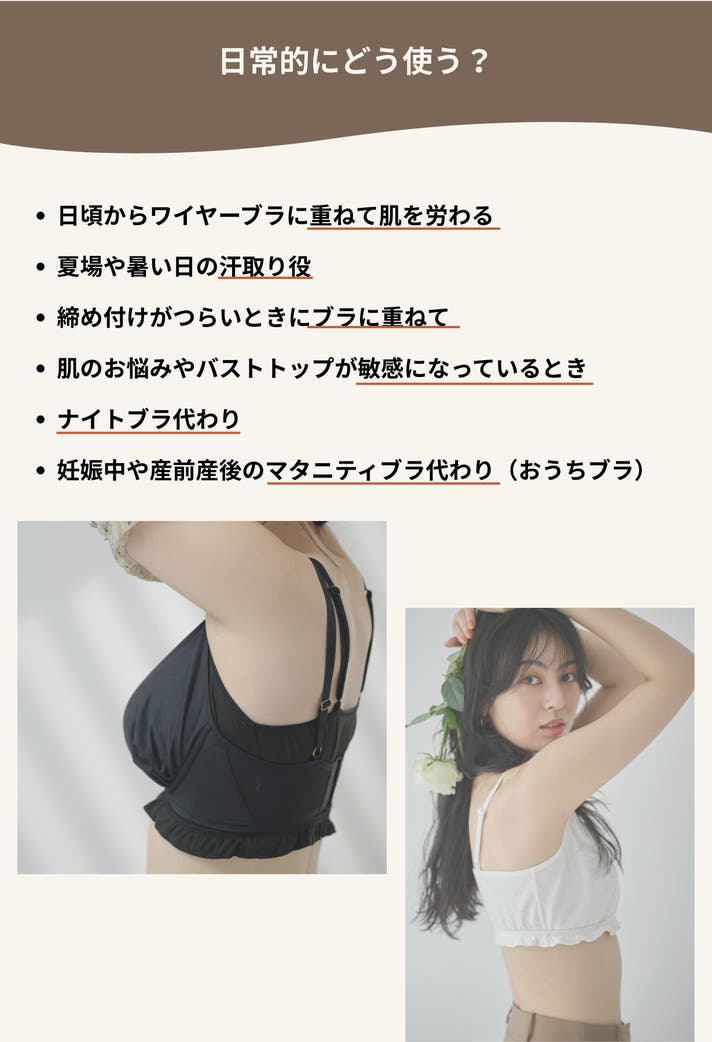 - 昼は重ねて夜は一枚。24時間続く2WAYのバストケア設計