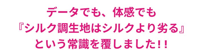 『SILKY-FINE』の肌触りのよさは データでも証明されて、 実際の生地が手元にあるメーカーとしても 大きな自信がありました。