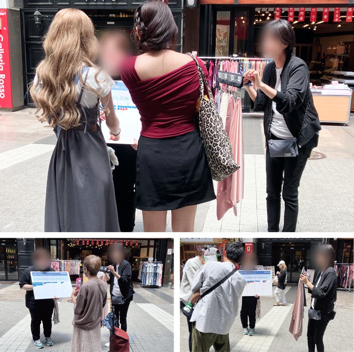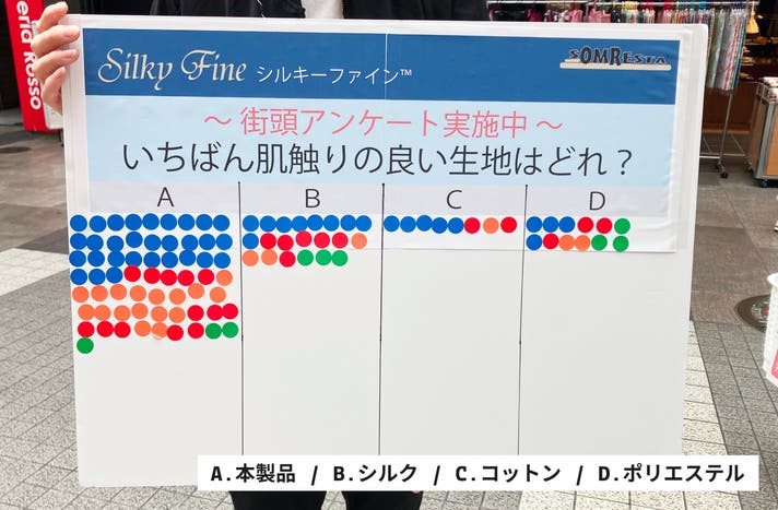 リアルな肌触りの素晴らしさをネットユーザー様にお伝えするために、街頭アンケートも行いました。