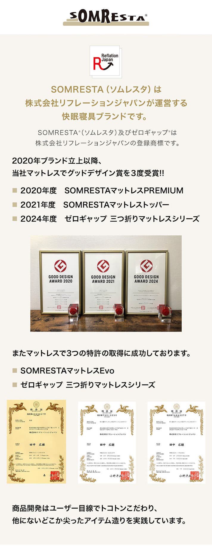 「SOMRESTA®(ソムレスタ)」及び「シルキーファイン®」は、株式会社リフレーションジャパンの登録商標です。※商標登録第6296005-6296006号/商標登録第6944887号
