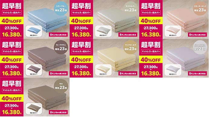 ■マットレス+枕カバー 2点セット (限定23枚x各色)