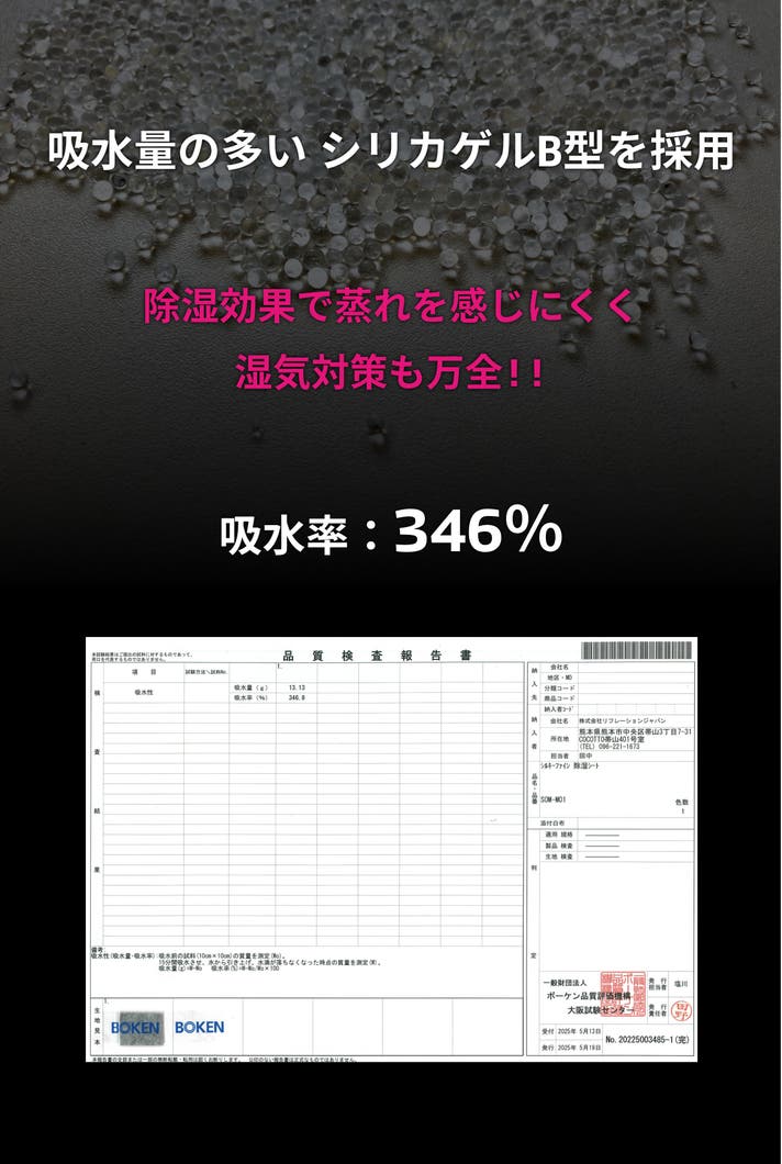 除湿シート 生地:ポリエステル100% 中材:シリカゲルB型