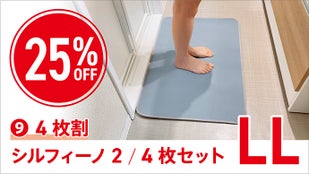 A1 : シルフィーノ2はシリカゲルと特殊テキスタイルを融合した最新技術を採用しており、従来の珪藻土バスマットと同等以上の速乾性を実現しています。さらに、裏面のダブルラッセル構造が通気性を向上させ、使用後も短時間で乾燥します。