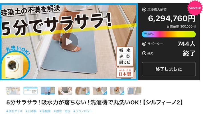「Makuake(マクアケ)」は、実行者の想いを応援購入によって実現するアタラシイものやサービスのプラットフォームです。このページは、 プロダクトカテゴリの 「【アンコール】5分でサラサラ!吸水力が落ちないバスマット【シルフィーノ2】日本製」プロジェクト詳細ページです。