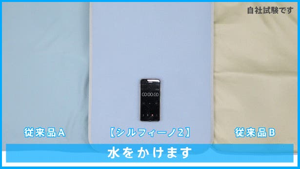 水滴が落ちると、【シルフィーノ2】ではシリカゲル層で水分の表面積を広げて、乾きやすくします。
