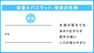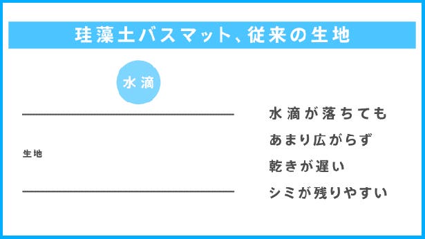 左:従来の珪藻土バスマット。硬くて危険も…