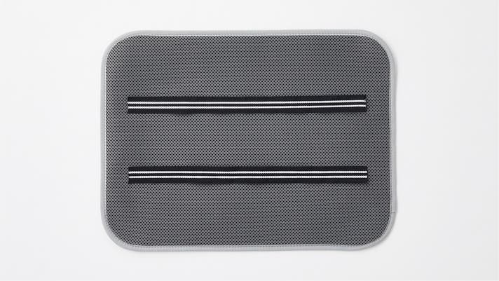 そのシリカゲル層は、裏生地ダブルラッセルの“空気の層”により床から浮いているような状況のため、より乾きが早まります。