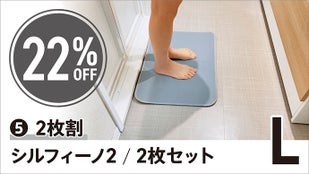 A1 : シルフィーノ2はシリカゲルと特殊テキスタイルを融合した最新技術を採用しており、従来の珪藻土バスマットと同等以上の速乾性を実現しています。さらに、裏面のダブルラッセル構造が通気性を向上させ、使用後も短時間で乾燥します。