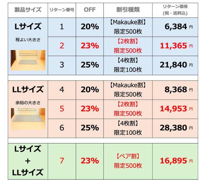 それぞれ数に限りがございますので、早めにご検討いただければ幸いです。