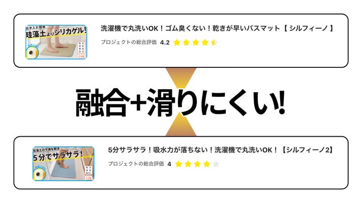 そして今、2つの長所を融合させ、さらに「滑りにくさ」という安心を加えた、 理想のバスマット「シルフィーノ3」が完成しました。