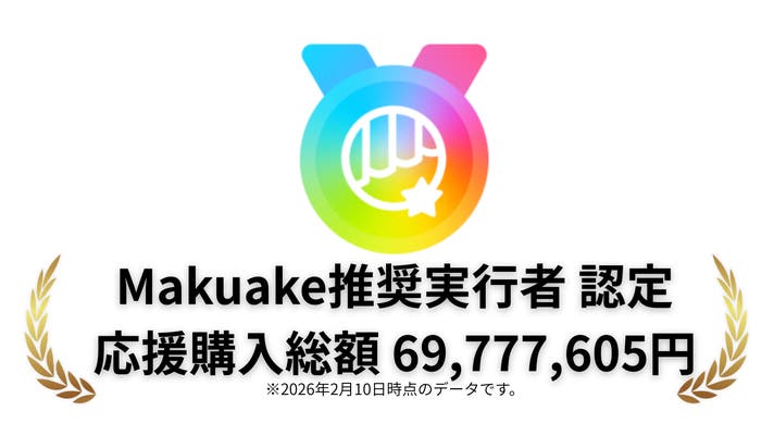 上記画像の左上にあるマークはMakuake推奨実行者に選定いただいた証です。