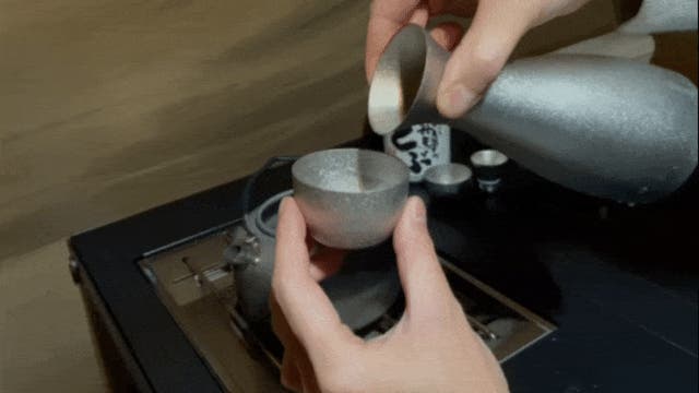 徳利はシングルウォールで、冬には湯煎で熱燗、夏には冷酒を注ぐと瞬時にキンキンに冷えます。