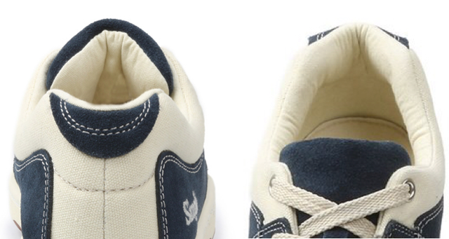 履き口がキャンバス地になっているところが、デザイン上の特徴の一つですが、これは機能面での特徴でもあります。革より柔らかいキャンバス地素材で、タン・ライニング・ヒール部に衝撃吸収フォームを入れ、足に優しい設計になっています。