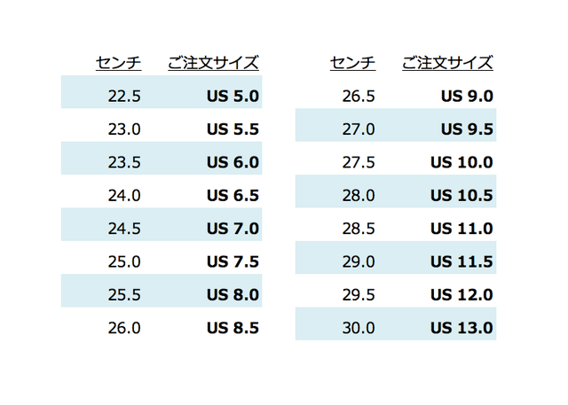 *サイズは、US5.0〜US13.0 16サイズ御座います。サイズ換算表をご参照下さい。