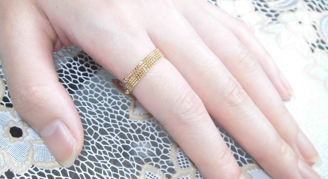 薬指でも人差し指でも好きな指に伸ばしてクルクルと巻くように着けてください。