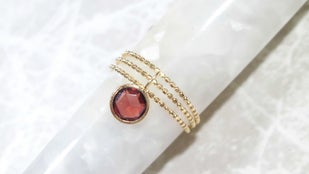 【早割】2ー1 18金3連風チェーンリング(ガーネット )