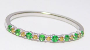 これらを使用し、他ではあまり見かけない組み合わせのレアストーンエタニティーリングを作りました