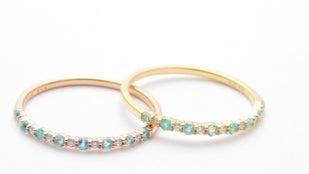 *左のリングは人気のパライバトルマリンとダイヤモンド 右はオールダイヤモンドです
