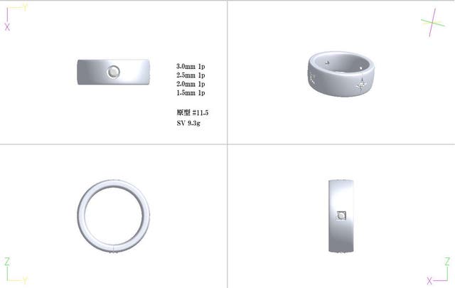一般的なリングは通常1本、もしくは2本原型があれば基本的なサイズ展開が可能なのですが、今回のデザインを採用するとそれぞれのサイズに専用の原型を作らないといけなくなります