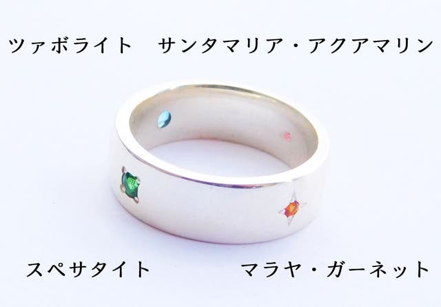 1本のリングに4種類のレアストーン(希少石)が輝くリングです