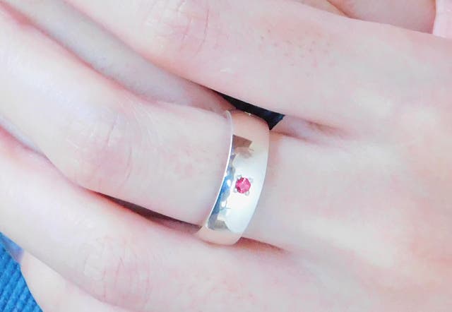 *これがそのリングです。訳をお話しし写真を撮らせて頂きました。ボリュームがあるけど太すぎず、中指に着けているからか、全体的なバランスも綺麗ですね!
