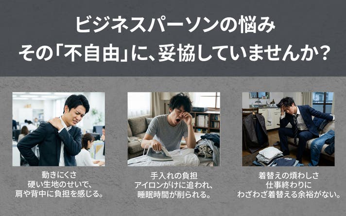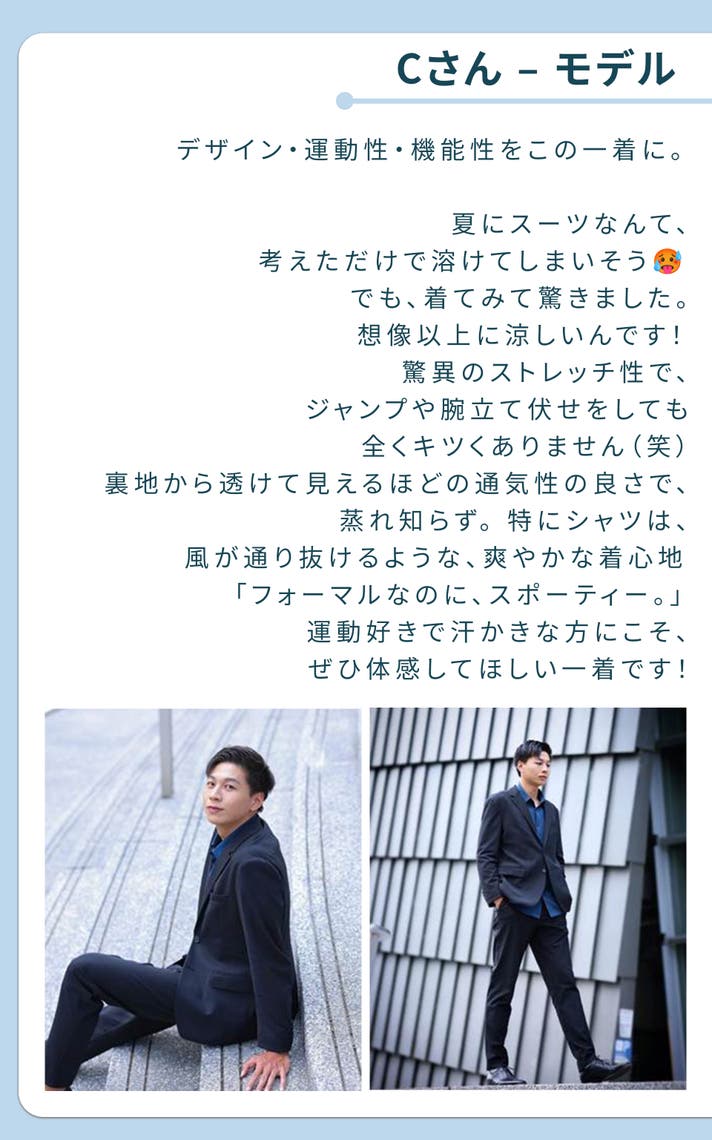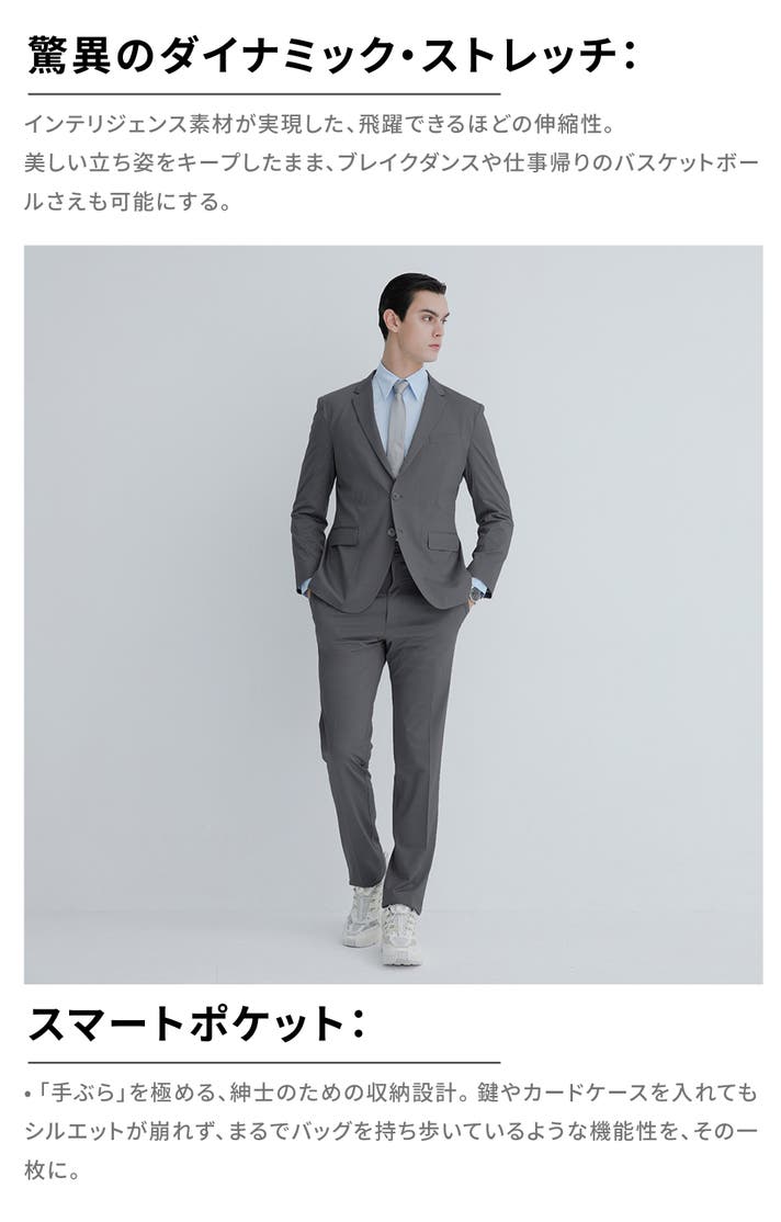 - 走れる、跳べる、洗える。シワになりにくい・ストレッチ性を備えた、仕事服を再定義するスーツ。