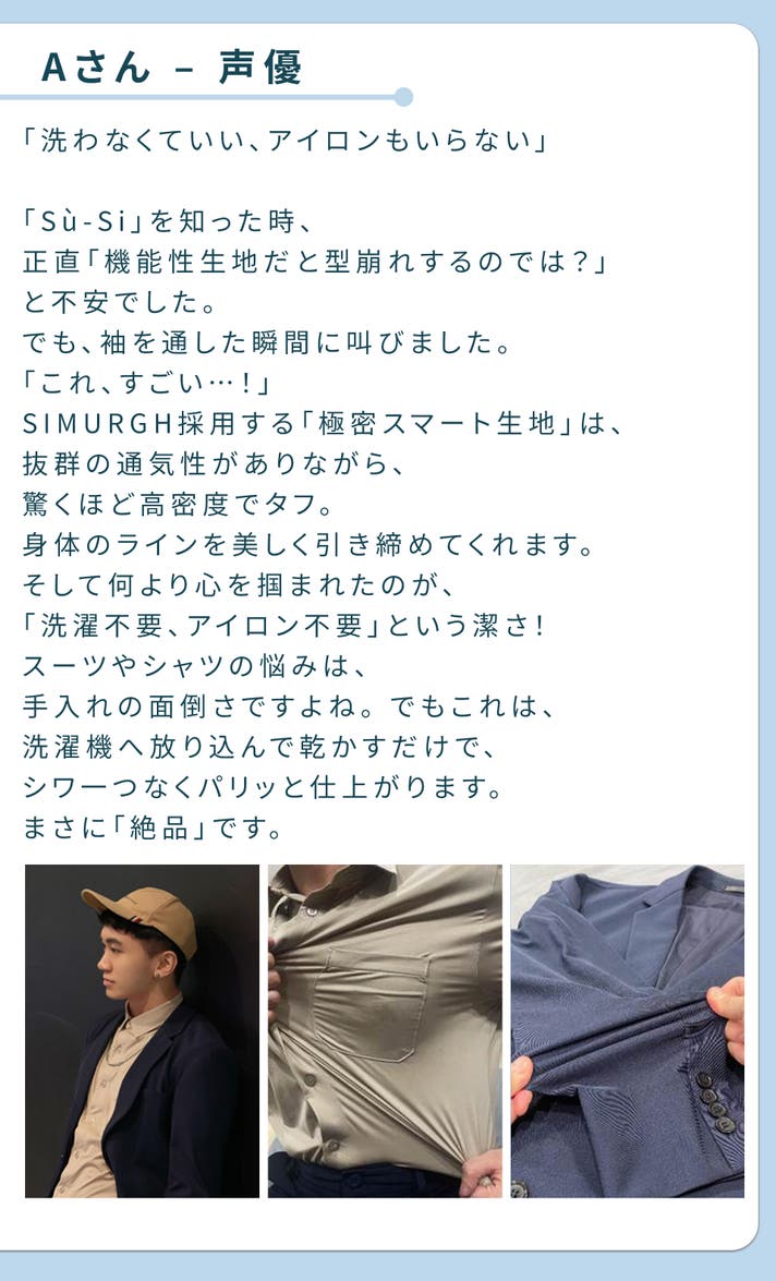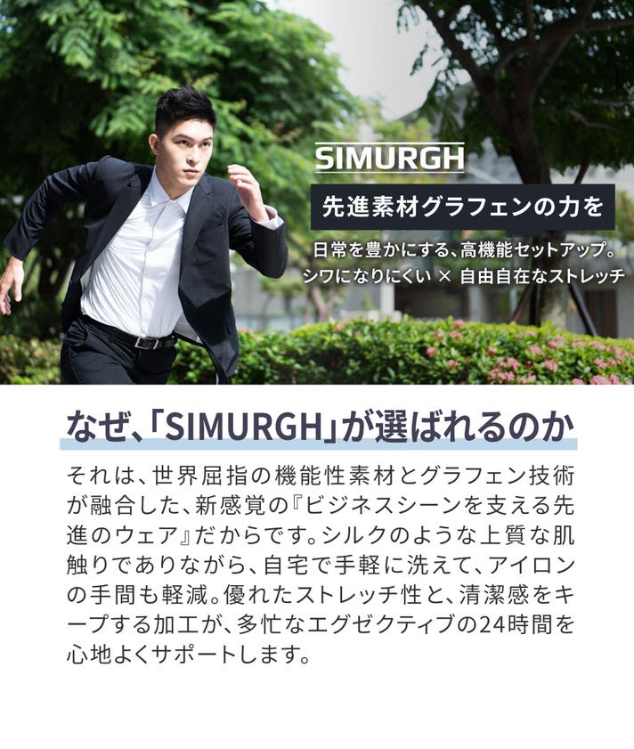 仕事も日常も、もっと自由に、もっと心地よく。SIMURGHが提案する、仕事服の新たなスタンダードをぜひ体感してください。